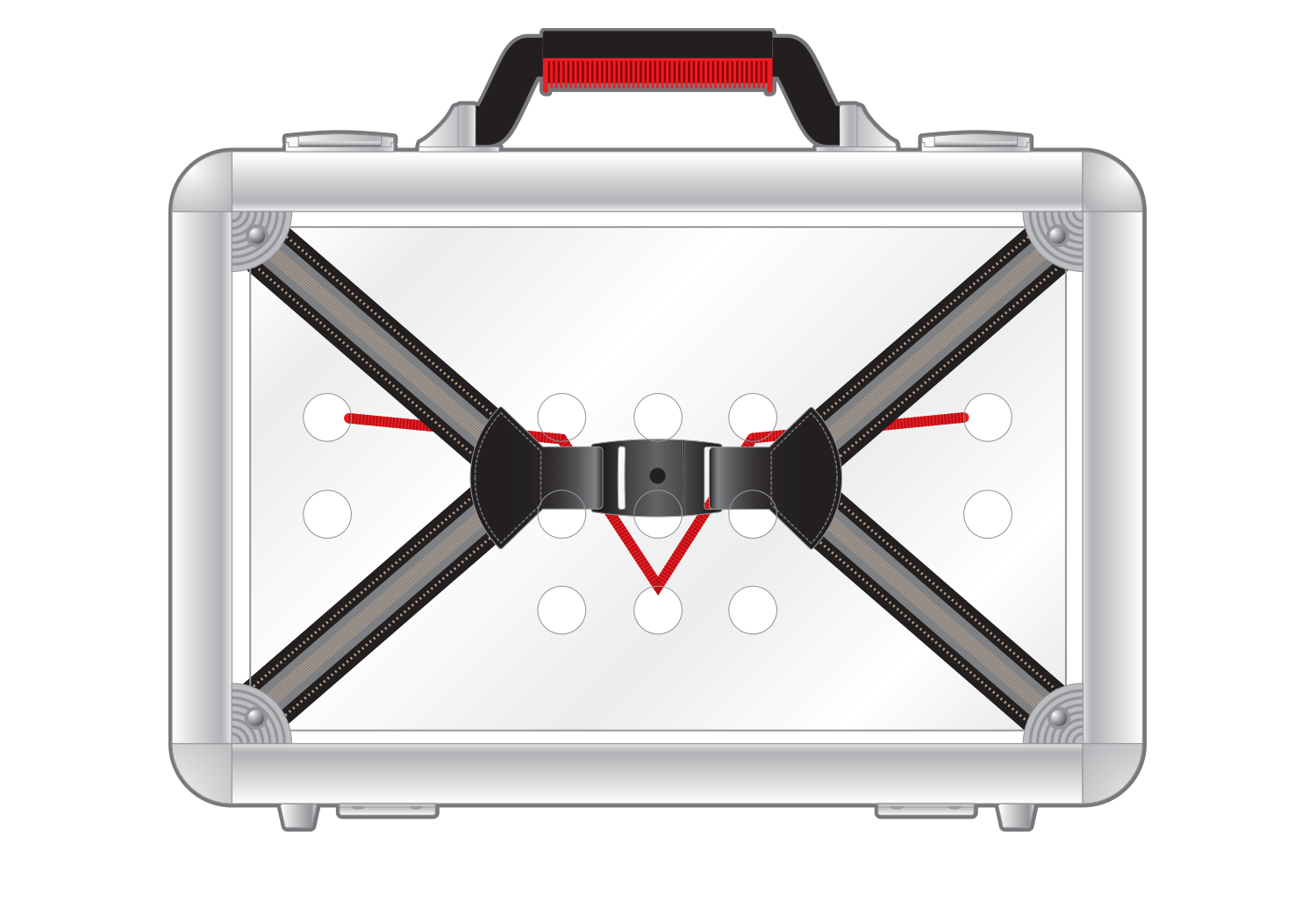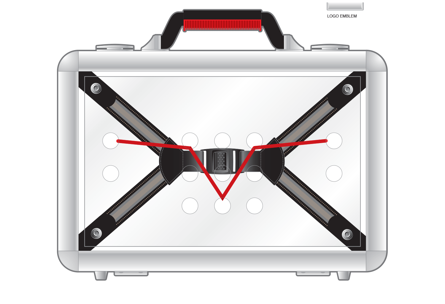 Vector technical illustration highlighting the transparent Hideo Wakamatsu briefcase design. With the inside of the case being highlyvisible details required a higher design aesthetic.