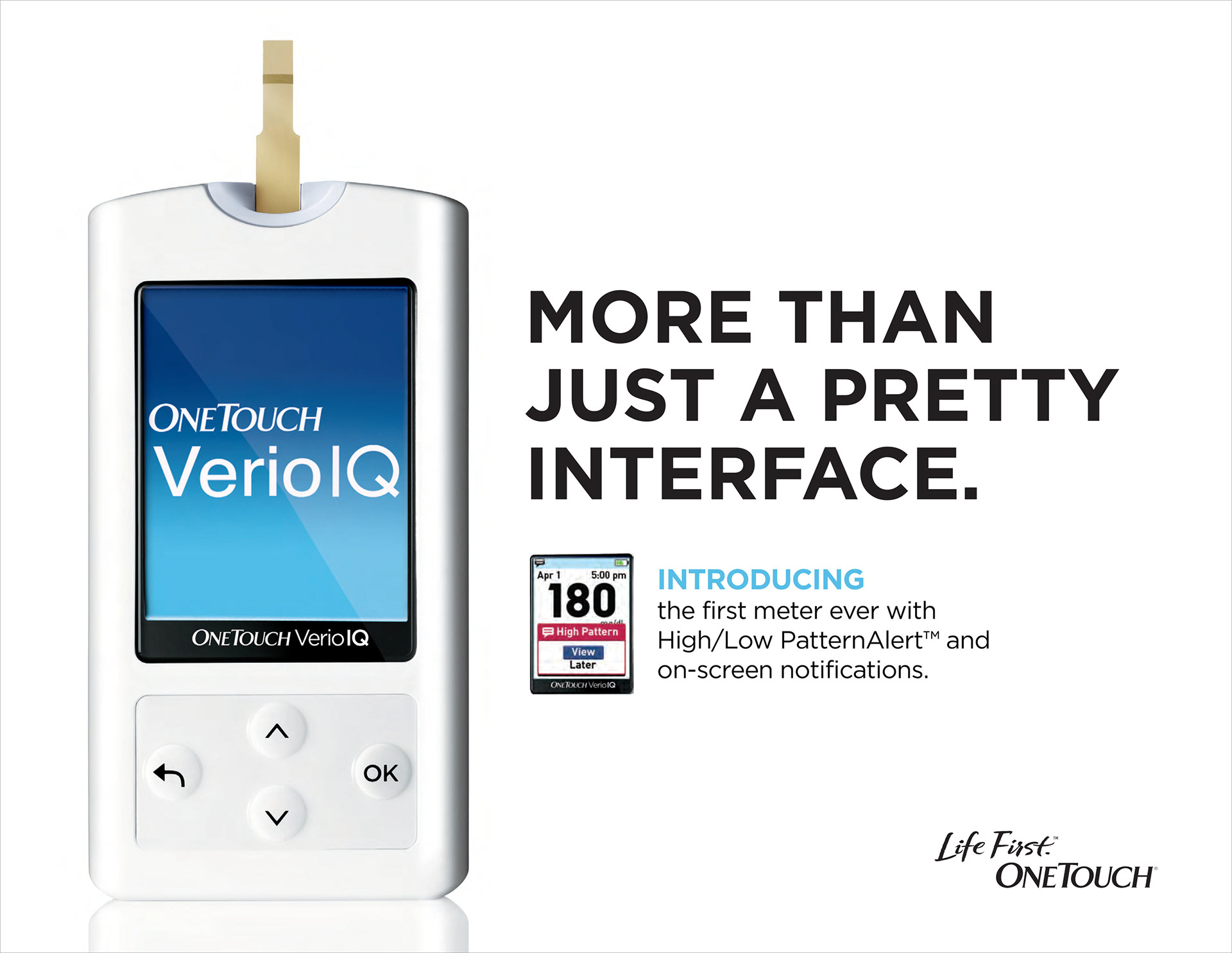 Print ads for the first diabetes meter that alerts users of potential blood glucose highs and lows.