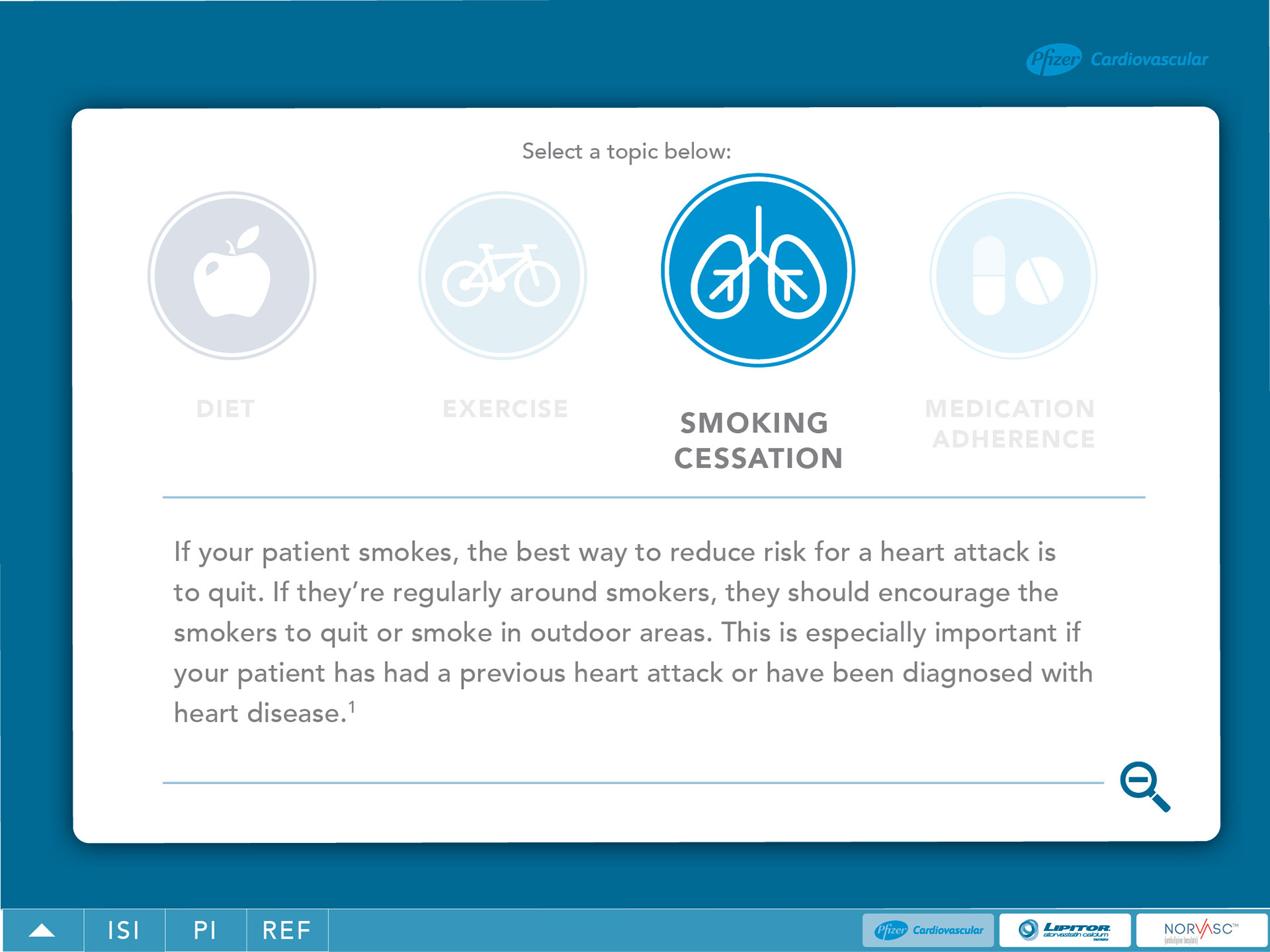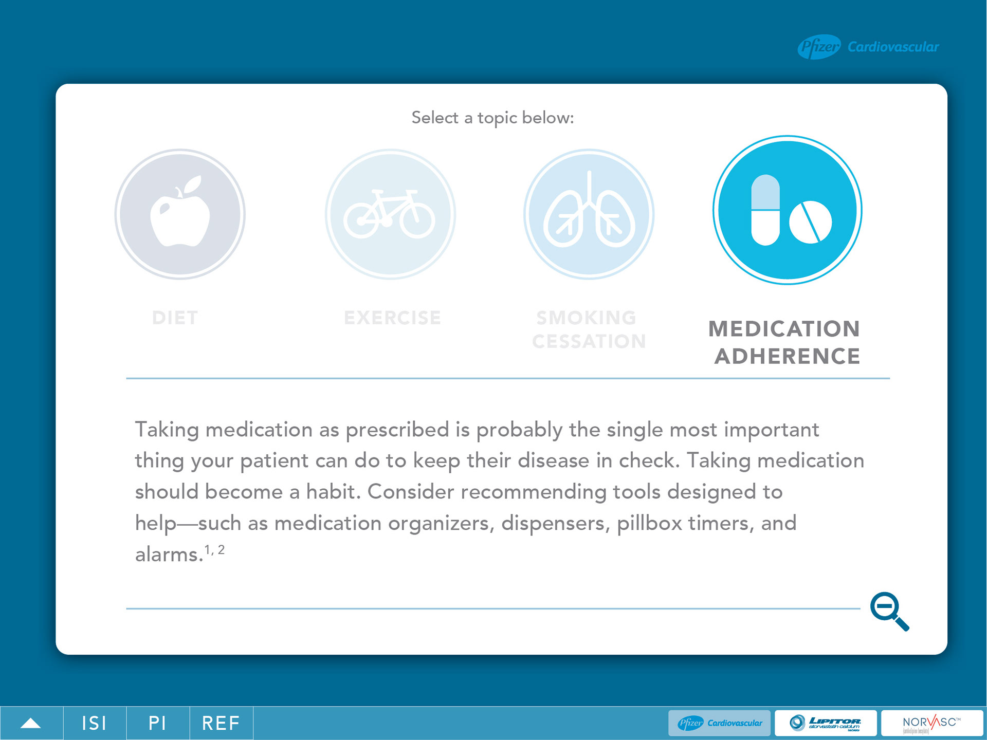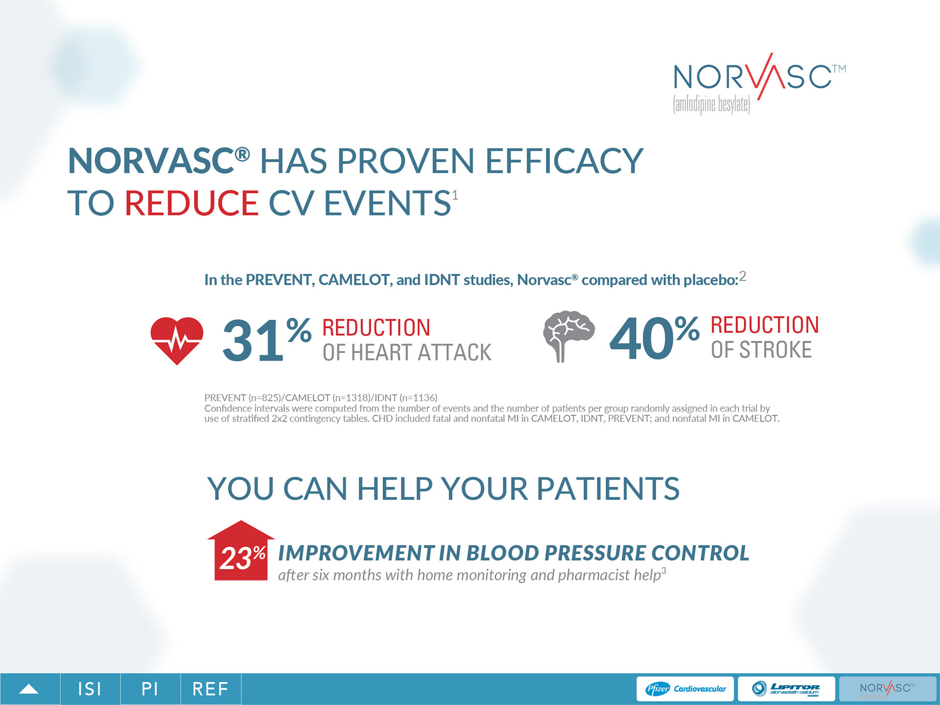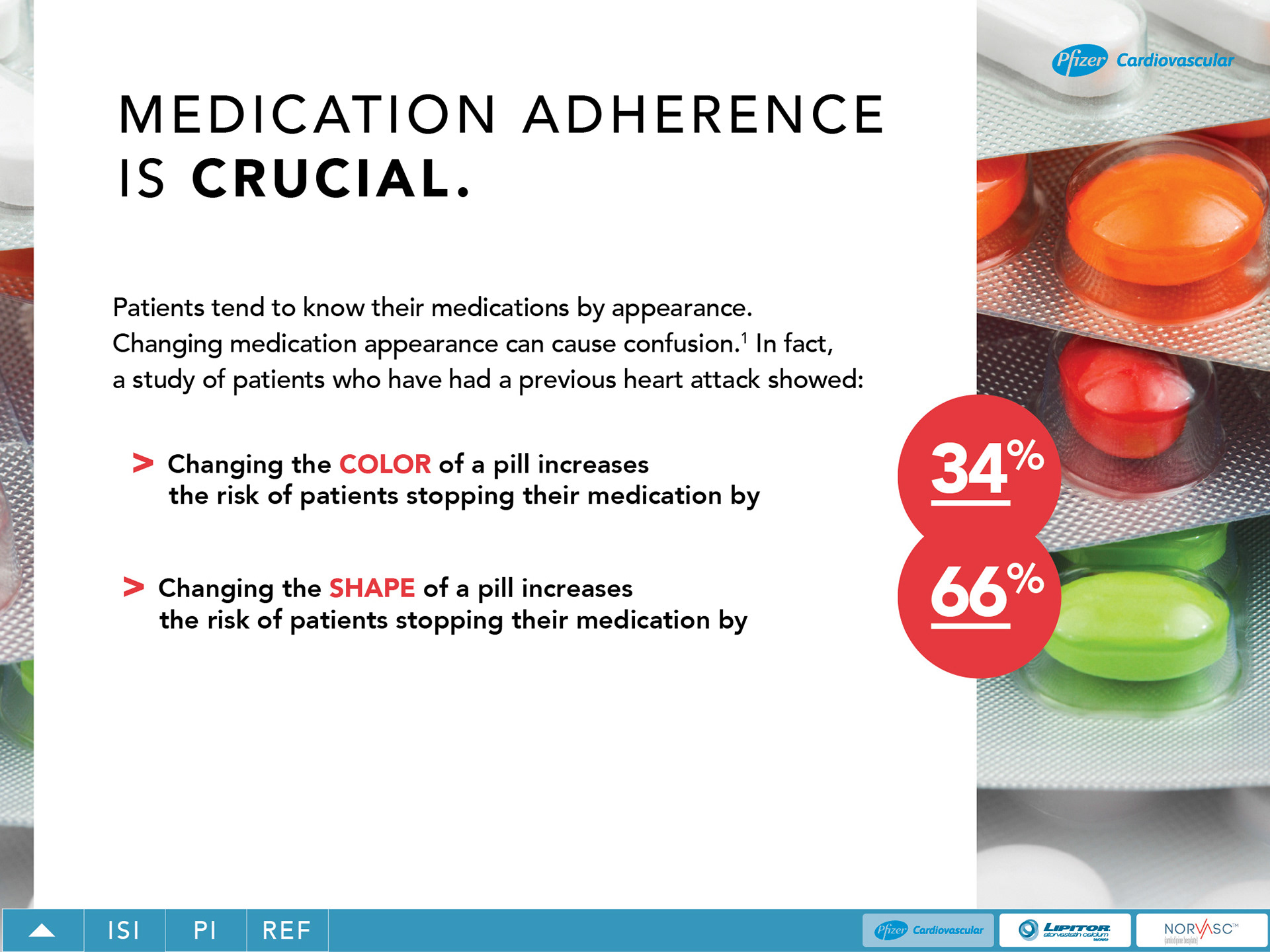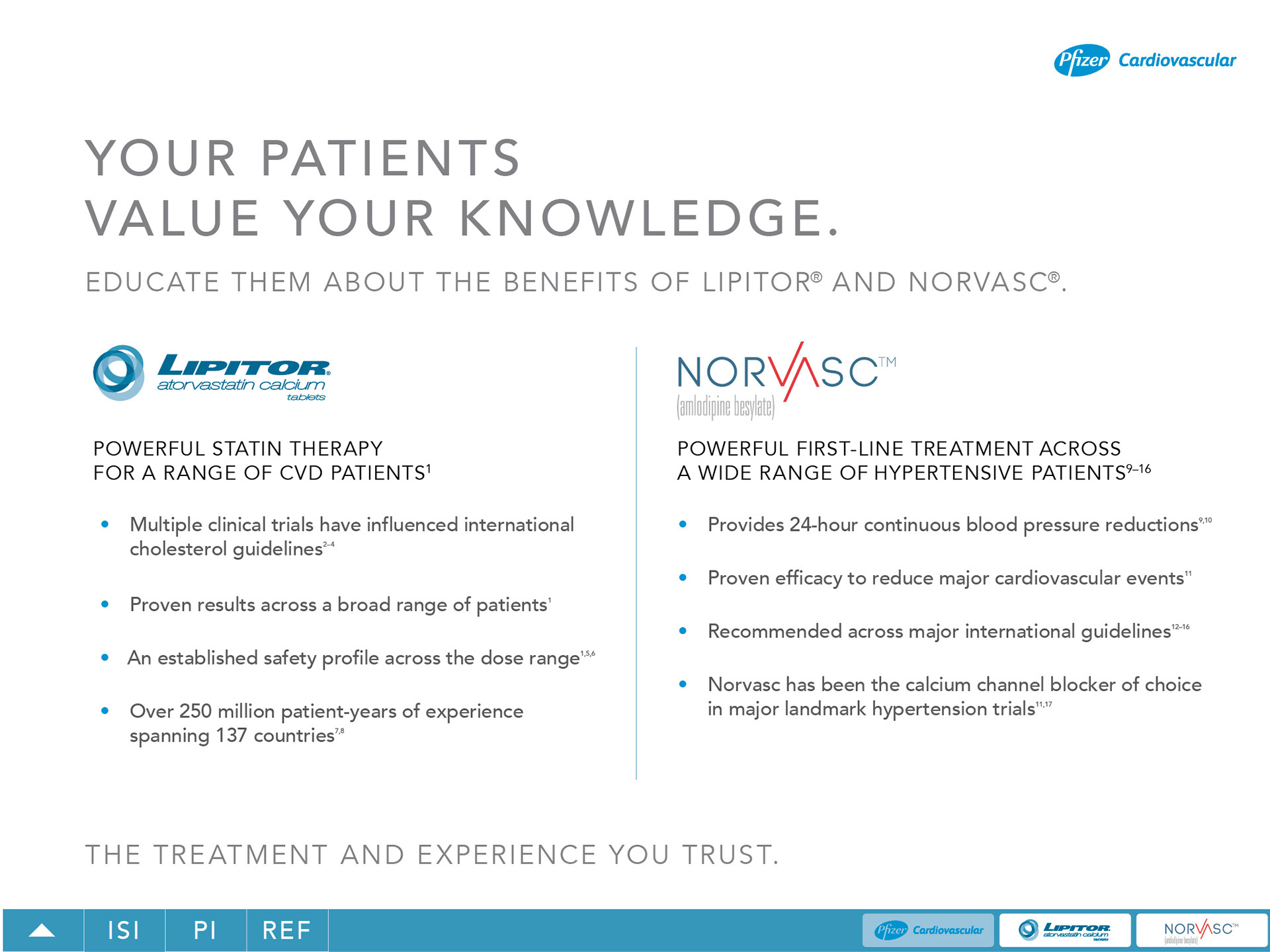 Training aid for medical professionals specializing in cardiovascular disease. Overview of cardiovascular disease (CVD) and care along with detail aids for two Pfizer medications used in treatment of CVD.